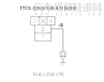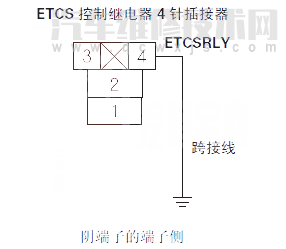 14 用跨接線連接ETCS控制繼電器4針插接器1號端子與車身搭鐵。