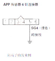 10 用跨接線連接 APP 傳感器 6 針連接器5 號端子與車身搭鐵。