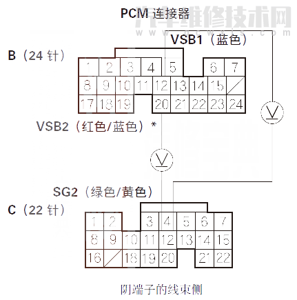 13 測(cè)量PCM連接器B12(B20)*和C12端子之間的電壓。