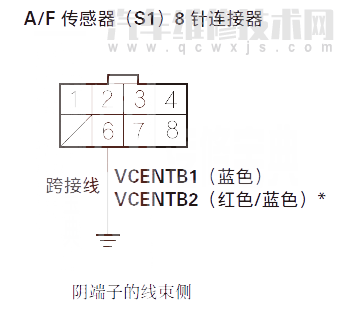 11 將跨接線從A/F傳感器(S1)8針連接器上拆下,然后重新連接PCM連接器B(24針)。
