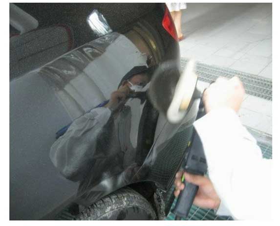 1 首先將前風窗玻璃密封起來,然后洗去鐵粉與雜質