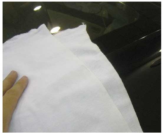 2 把拋光劑搖勻并倒少許在海綿拋光盤上,用拋光盤在漆面上涂抹均勻