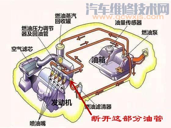 辦法總是有的,既然從加油口抽不出油來,那我們就讓汽油自己泵出來。現(xiàn)在的小汽車汽油泵都是電動(dòng)的,只要通上電,它就會(huì)把汽油從油箱中泵出來。