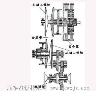 ·由金屬帶、主、從動工作輪、液壓泵、起步離合器和控制系統(tǒng)等組成。