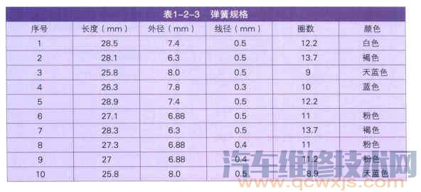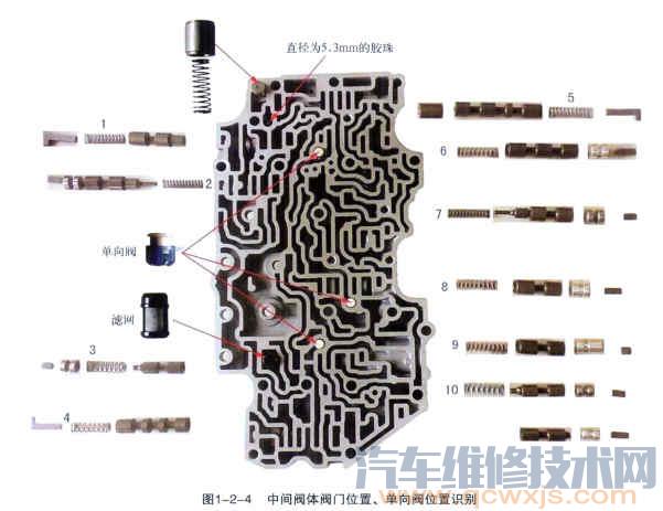 四、中間閥體閥門位置、單向閥位置識別(如圖1-2-4所示)及相關(guān)彈簧數(shù)據(jù)(如表1-2-3所示)