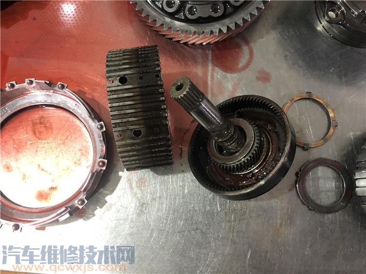 解體后發現:K2離合器總成,K1離合器總成,輸入軸,輸入行星架,嚴重燒蝕,需更換還有濾網.大修包.變速箱油。