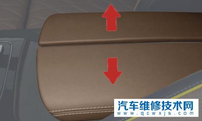 中央扶手為左右對開形式,按壓扶手前端按鈕,扶手可以自動向左右側翻轉,即可開啟中央扶手箱。