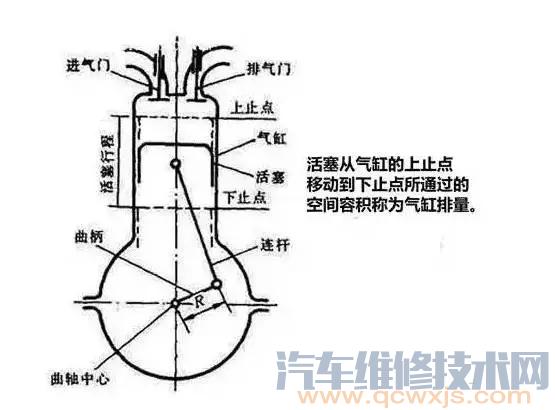 活塞從氣缸的上止點移動到下止點所通過的空間容積稱為氣缸排量,由于汽車發動機通常都有若干個氣缸,所以發動機的排量就是所有氣缸排量之和。