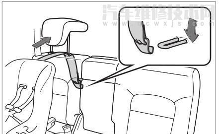 若使用前向安裝的兒童座椅時,若頭枕影響兒童座椅靠背與后排座椅靠背貼合,則應取下頭枕。