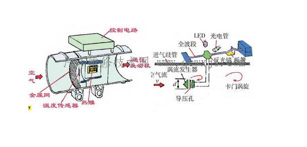 卡門渦旋式空氣流量傳感器。 卡門渦旋式空氣流量傳感器通常與空氣濾清器外殼安裝成一體,在進氣管道中間設有渦流發生器,這個渦流移動的速度與空氣流速成正比。因此,通過測量單位時間內渦流的數量就可計算出空氣流速,再將空氣通道的有效截面與空氣流速相乘,就可以知道吸人空氣的量。