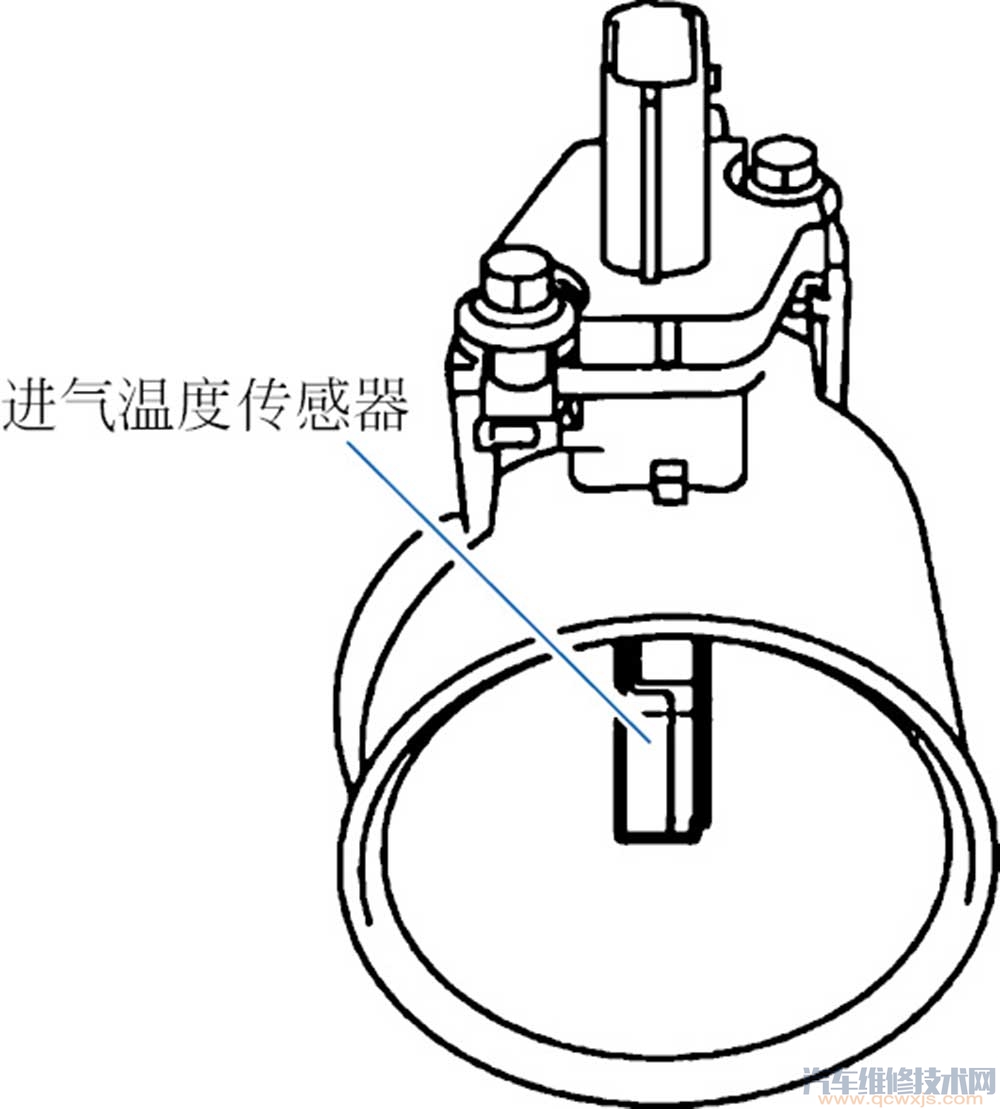 (2)作用目的 進氣溫度傳感器安裝在增壓空氣冷卻器和節(jié)氣門之間的增壓空氣管上。渦輪增壓器發(fā)動機上的進氣溫度傳感器感測由渦輪增壓器壓縮并由增壓空氣冷卻器冷卻的新鮮空氣的溫度。如果是自然吸氣發(fā)動機則直接感測的是新鮮空氣進氣溫度。因空氣密度隨溫度的變化而變化,而噴油量是按空氣質(zhì)量來計算的,且理想空燃比是14.7∶1,所以ECU必須根據(jù)進氣溫度對噴油量進行修正,以獲得最佳的空燃比。