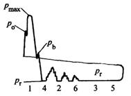 (1)全周期單缸波將某一缸高壓油管中的壓力隨噴油泵凸輪軸轉過360°時的變化情況顯示出來的波形,如圖2-70所示。波形上有一個人工移動的亮點,指針式表頭可以指示出亮點所在位置的瞬態壓力。因此,移動亮點可測出某缸高壓油管中的殘余壓力pr、針閥開啟壓力po、針閥關閉壓力pb和最大壓力pmax等。