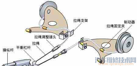 與此同時,與手剎配套使用的還有回復彈簧。拉起手剎制動時,彈簧被拉長;手剎松開,彈簧回復原長。長期使用手剎時,彈簧也會產生相應變形。