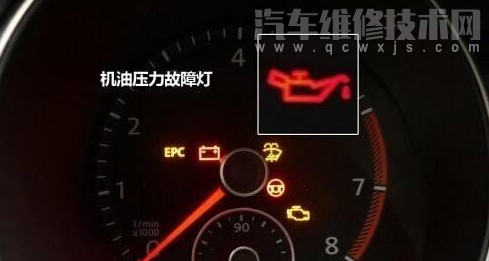 機油壓力不正常一般常見的會報機油壓力過高和機油壓力過低。儀表會有一個紅色故障燈提醒(如圖)