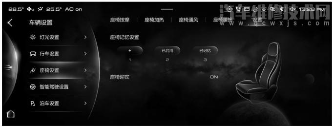 將駕駛員座椅、外后視鏡調節到所需位置,長按屏幕上的任一設置開關可以存儲當前位置,同時提示“記憶成功”。