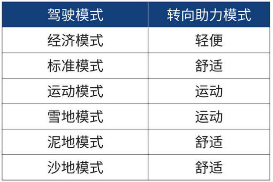 增加轉向助力,轉向較為輕松,適用于市區等交通擁擠的駕駛環境。