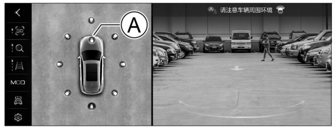 車速低于 10 公里/小時,觸摸俯視圖區域,俯視圖顯示方位按鈕。觸摸不同方位的按鈕,影像區域顯示該按鈕所對應的視角影像。