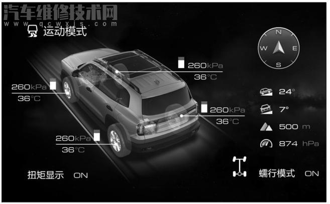 通過多媒體顯示屏越野信息界面,可開啟或關閉蠕行模式。