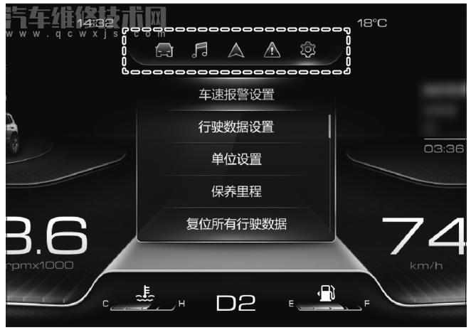 在行駛數據或油耗信息界面,按壓 【OK】按鈕,可在 A 數據界面和 B 數據界面之間切換。