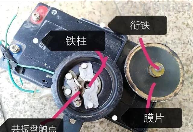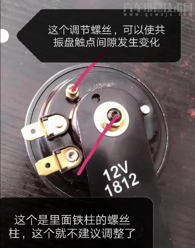 ①打開車鑰匙,按住喇叭按鈕,用螺絲刀對著喇叭敲幾下如果會響的話說明是喇叭內部的共振盤間隙過大或過小,這時我們就可以用螺絲刀把這個螺絲正轉或反轉找到清脆的聲音就可以了。
