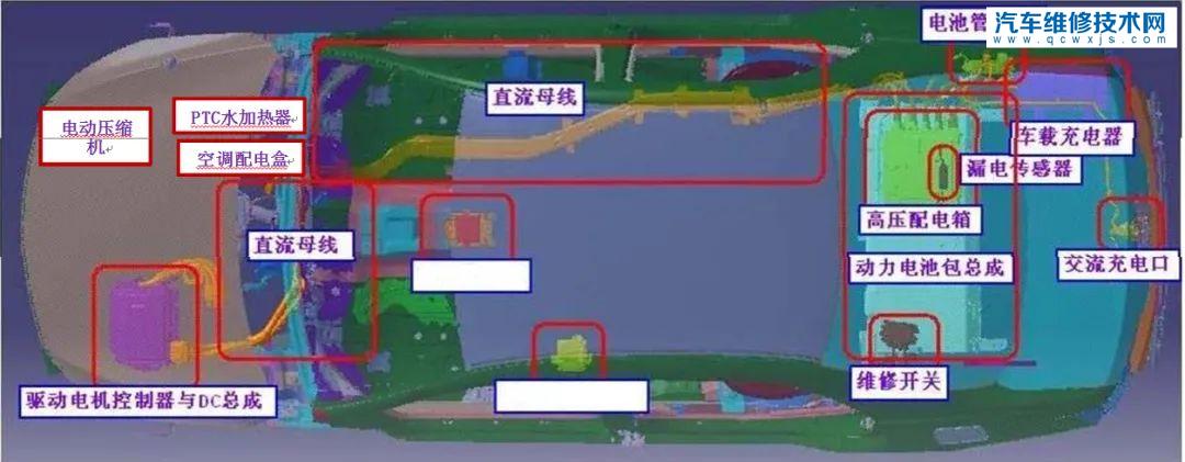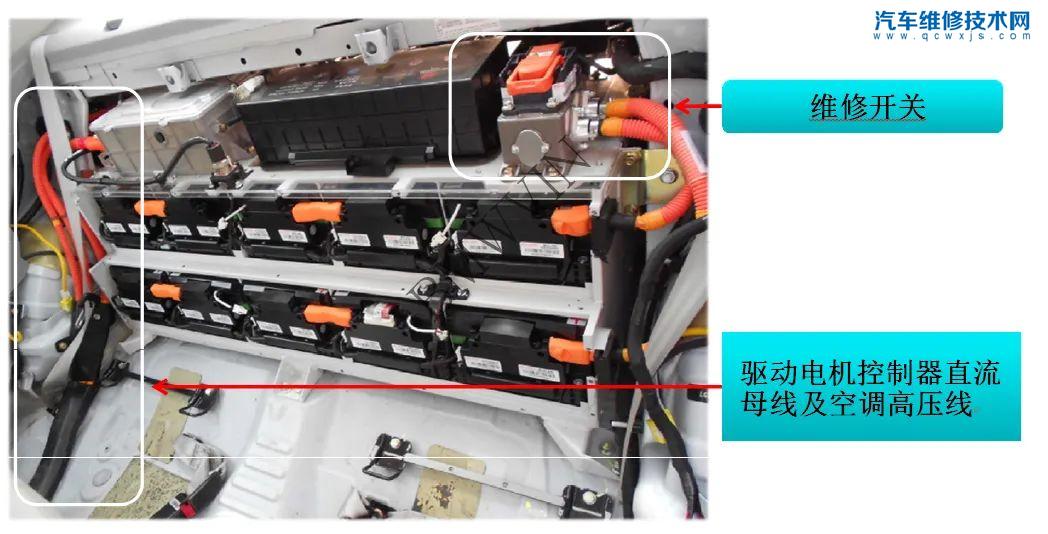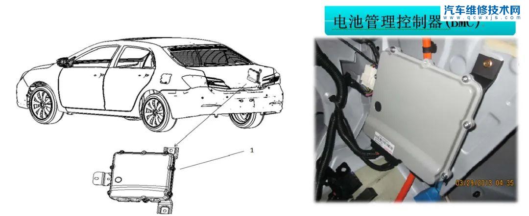 組成:分布式電池管理系統(tǒng)(DistributedBatteryManagementSystem)簡稱DBMS,由10個(gè)電池信息采集器(BatteryInformationCollector)簡稱BIC 和1個(gè)電池管理控制器(BatteryManagementController)簡稱BMC組成。10個(gè)BIC分別位于10個(gè)動(dòng)力電池模組的前端,BMC位于行李箱車身右C柱內(nèi)板后段。