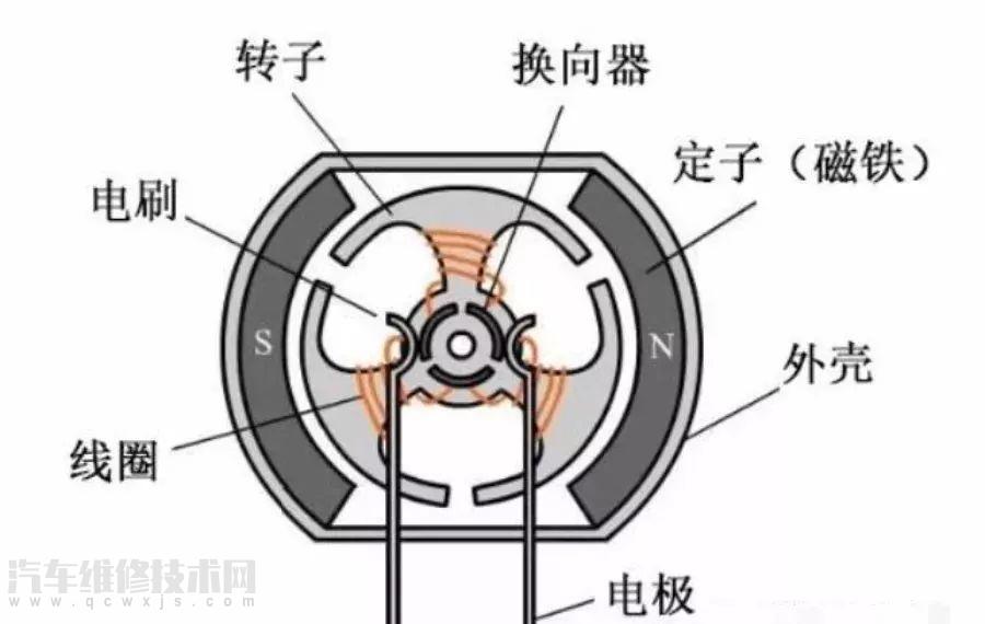 有刷直流電機是最簡單的直流電機, 它利用電刷通過機械換向將電流傳給電機繞組。電樞或轉子是電磁體,磁場是永磁體。這種電機無需控制器來操作或改變速度,低速時能提供最大扭矩。缺點是結構笨重、效率低、電刷會生熱并導致效率低下,熱量在轉子中心而難以消除。 因此,有刷直流電機已不再用于電動汽車。