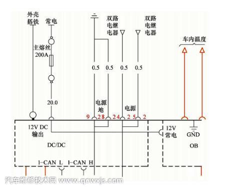 DC輸出端與低壓蓄電池正極之間串有一個200A熔絲。