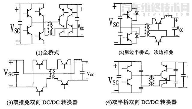 隔離型雙向DCDC在非隔離型雙向DCDC轉換器的基礎上加上一個高頻變壓器就構成了隔離型雙向DCDC轉換器,高頻變壓器兩側的電路拓撲可以是全橋式、半橋式、推挽式等等。這幾種隔離型的雙向DCDC轉換器,采用了更多的功率開關,電壓變比大,帶電氣隔離等優點。但是這類DCDC轉換器結構復雜,成本也相對較高,轉換器的損耗高,低頻時會導致隔離變壓器鐵芯飽和,損耗會進一步增加。因此,非隔離型雙向DCDC轉換器比隔離型在電動汽車上運用更具有優勢。