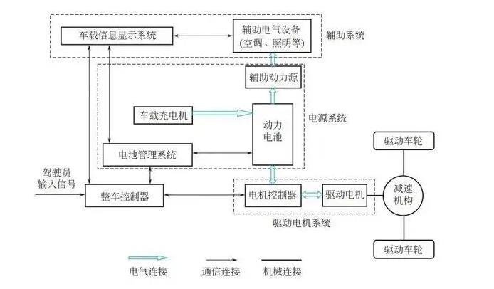 純電動汽車的系統結構包括三個子系統,即電力驅動子系統、能源子系統和輔助子系統。