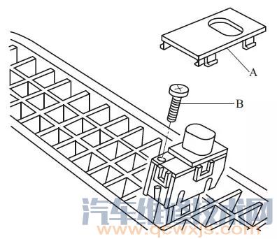 ② 新鮮進氣溫度傳感器拆裝。拆下雜物箱,拔下插頭A,將傳感器B轉(zhuǎn)90°后從空氣管道上拉出 ▼