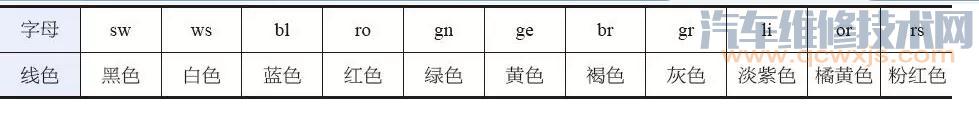 大眾車系單色線顏色字母代碼與豐田車系不同,采用小寫兩個字母組合表示單線色。