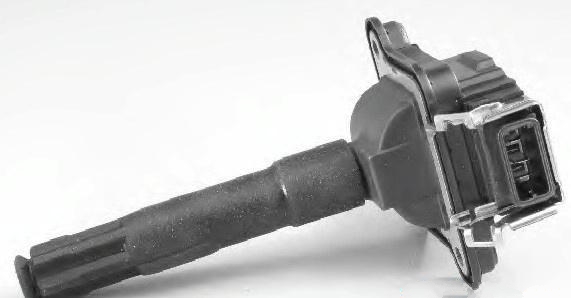 點火線圈由主線圈、次級線圈、磁芯、開關三極管及其它輔助原件組成,主線圈一般由主繼電器供12V電,次級線圈放電火花塞點火,三極管負責開關。點火線圈有3線和4線兩種,3線為電源正、負、開關控制(ECU指令),4線多了一條點火檢測線IGF(豐田),大眾四線式多了一個次級線圈負。