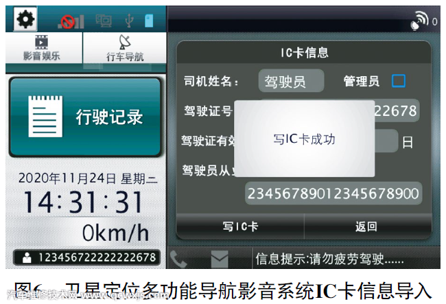 (5)IC卡信息編輯完成后,插入空白IC卡(注意芯片向下),點擊“寫IC卡”,屏幕提示寫IC卡成功(圖6),注冊完成。