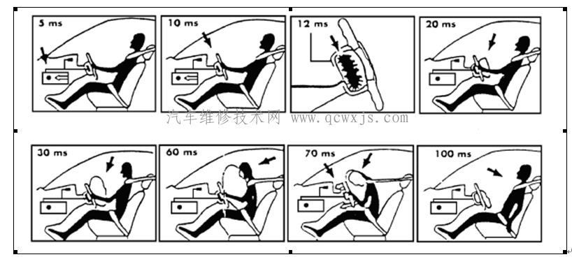 整個碰撞——安全氣囊展開對乘員的安全保護過程,大約60~100ms。安全氣囊展開進行保護的過程,是一種不可逆的過程,在完成保護過程后,必須重新安裝安全氣囊控制器和安全氣囊總成。