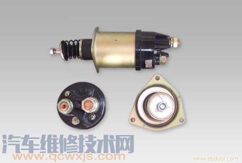 首先從后端抽出活動鐵芯和彈簧,用烙鐵燙開電磁開關盒上連接片處的焊錫,使電磁開關線圈接頭脫開,然后擰下開關盒的固定螺栓,將開關盒與線圈殼體分開,并將開關軸裝配部件從殼體的擋鐵上拔出來。