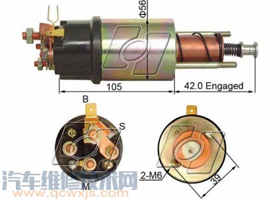 拆下起動機電磁開關接線柱上的磁場線圈導線,用萬用表兩表筆分別接電磁開關“M”與“S”接線柱(即吸引線圈兩端)檢測其阻值;再將