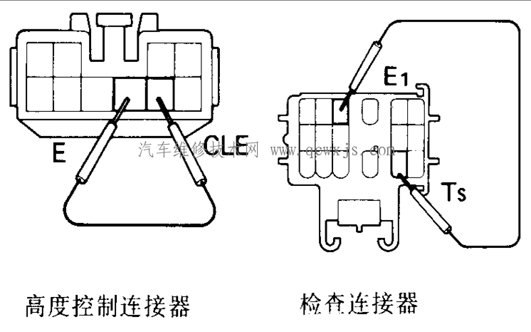 或點(diǎn)火開關(guān)OFF,跨接高度控制連接器的端子9與端子8 10s以上。