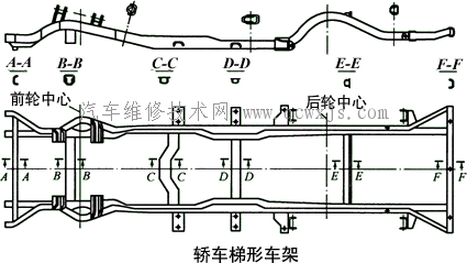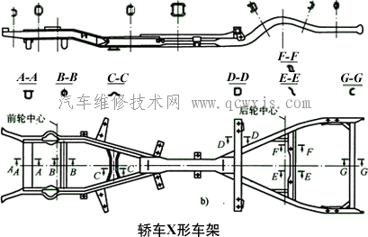 單從縱梁形狀和結構特點 ,又可分為周邊式車架、X形車架和梯形車架。