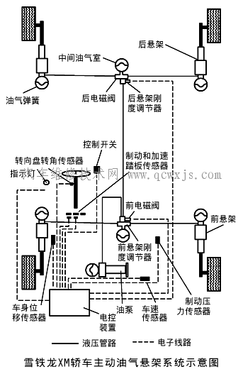 其特點 是通過調節油氣彈簧的剛度達到主動調節目的。