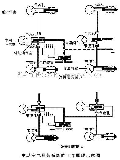 其特點 是通過調節空氣彈簧的剛度達到調節目的。