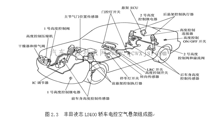 圖2.3 豐田凌志LS400汽車電控空氣懸架組成圖