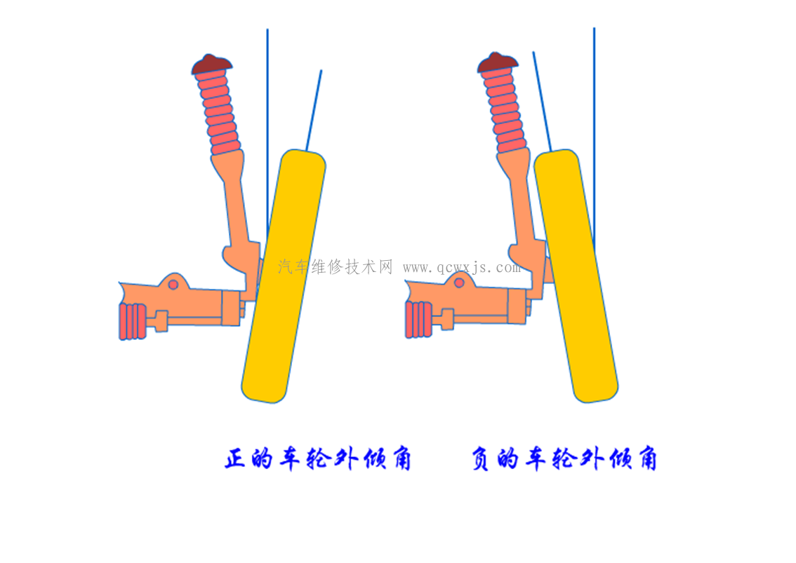 轉向時,如有正外傾,則離心力使外輪外傾加大,加大磨損變形。橫向穩定性差,不足轉向加大,即增橫向穩定和減小胎磨損。