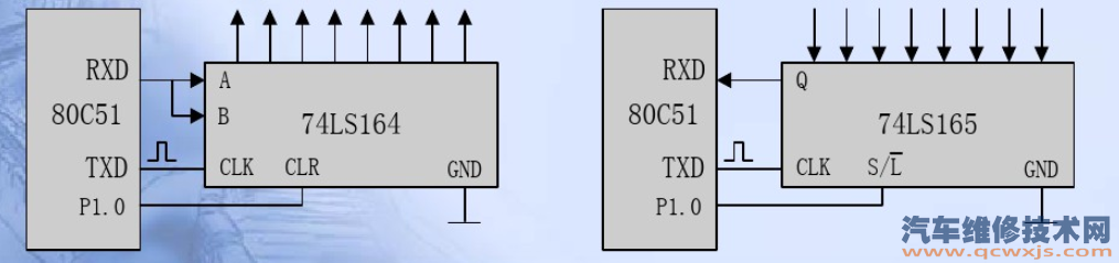 串行接口的工作方式0為移位寄存器I/O方式。在串行口外接移位寄存器以擴展I/O接口,也可以外接串行同步I/O的設備。