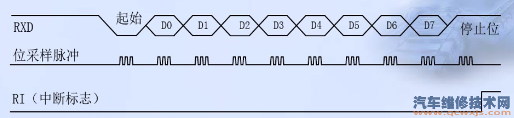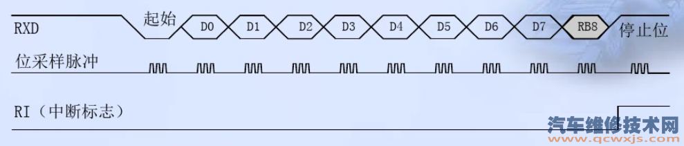 串行口被定義為方式2或方式3接收時,數據從RXD端輸入,置REN=1以后,開始接收過程。當檢測到RXD端從高到低的負跳變時,確認起始位有效,開始接收本幀的其余信息。