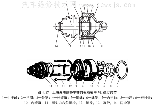 目前國內外多數汽車的前轉向驅動 橋均采用這種萬向節,如紅旗CA7220、一汽奧迪100、捷達、高爾夫和上海桑塔納等 汽車。