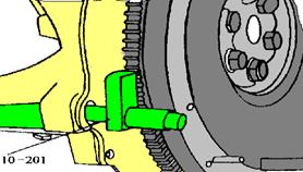 用專用工具10-201將飛輪固定。如圖2-8所示,用專用工具10-213將離合器從動盤定位于飛輪和壓盤中心。裝上緊固螺栓,并用25N·m的力矩對角逐漸旋緊。