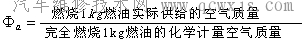 燃燒1kg燃油實際供給的空氣質量與完全燃燒1kg燃油的化學計量空氣質量之比為過量空氣系數,記作;;φa。