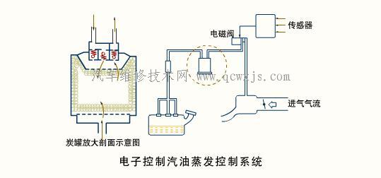 汽油箱和化油器浮子室中的汽油隨時都在蒸發汽化,若不加以控制或回收,則當發動機停機時,汽油蒸氣將逸入大氣,造成對環境的污染。汽油蒸發控制系統的功用便是將這些汽油蒸氣收集和儲存在炭罐內,在發動機工作時再將其送入氣缸燃燒。