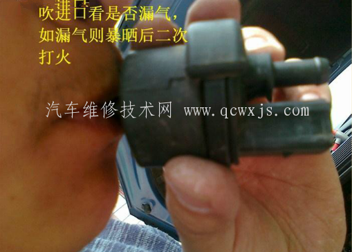 檢測(cè)方法:拆下后用嘴吹進(jìn)氣口,如果漏氣,說明已經(jīng)壞掉,車輛會(huì)二次以上打火才能啟動(dòng); 如果不漏氣,說明碳罐電磁閥完好,尋找其他 原因。