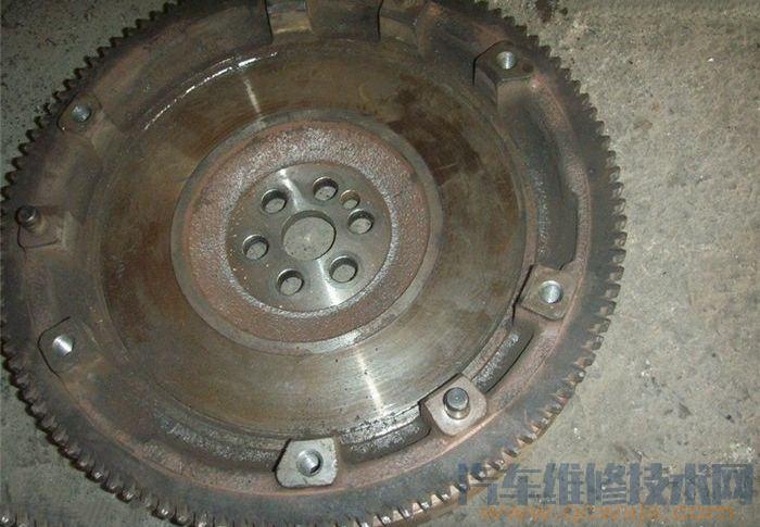 壓盤壓力不足,使離合器與飛輪經常處于半離合狀態,從而加劇了飛輪平面磨損。當離合器摩擦片磨損到極限后,露出的鉚釘頭將其表面刮出溝槽,嚴重損傷飛輪平面。